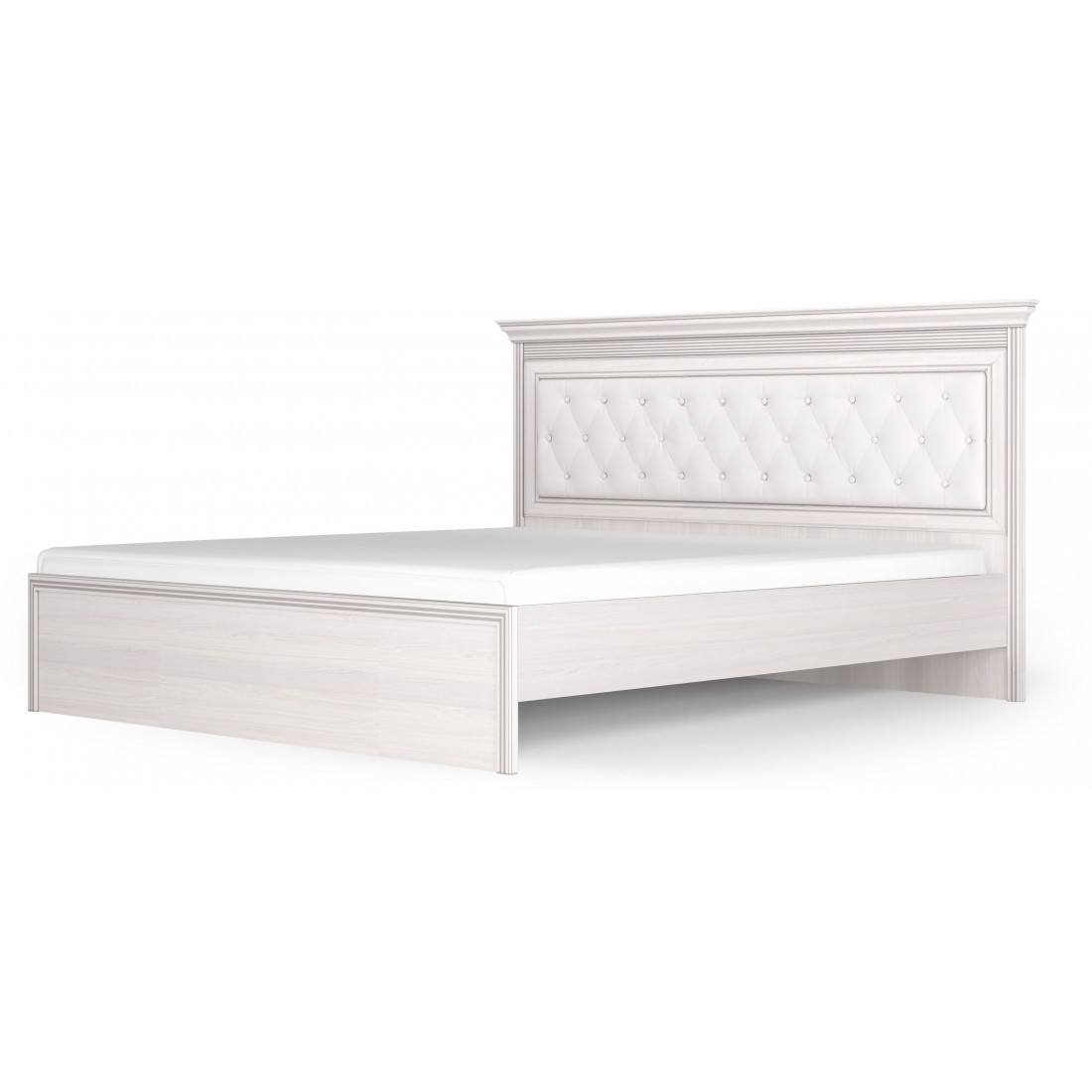 Кровать 1400/1600/1800 с ортопедическим основанием Неаполь Ясень анкор светлый (патина "серебро") экокожа polo белая