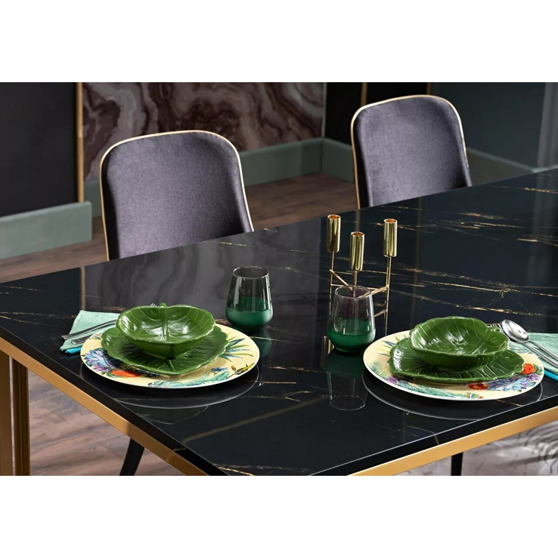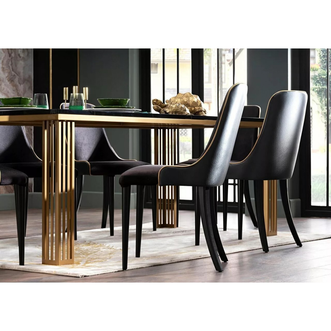 Комплект стульев для гостиной Карлино (Carlino) CARL-16A-02 в количестве 2 штук. Стулья оформлены нежной бархатистой тканью с отделкой из экокожи.