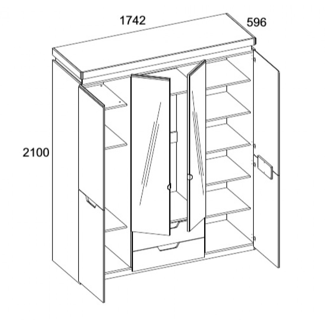 Четырехстворчатый шкаф для одежды СЛ-8 Лацио с зеркалом