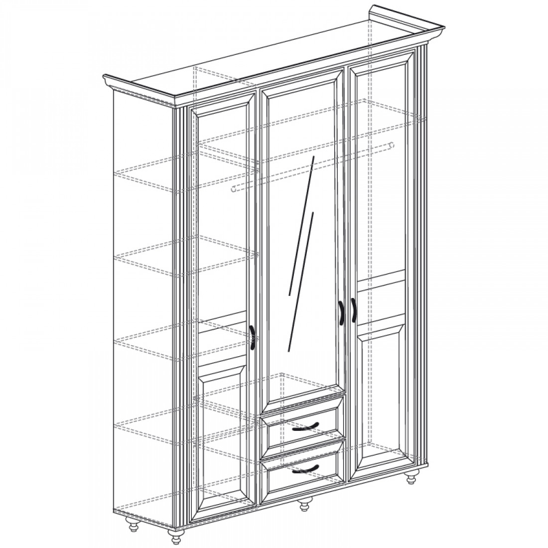 Трехстворчатый шкаф для одежды с зеркалом Rimini РМШ1/3(слоновая кость)